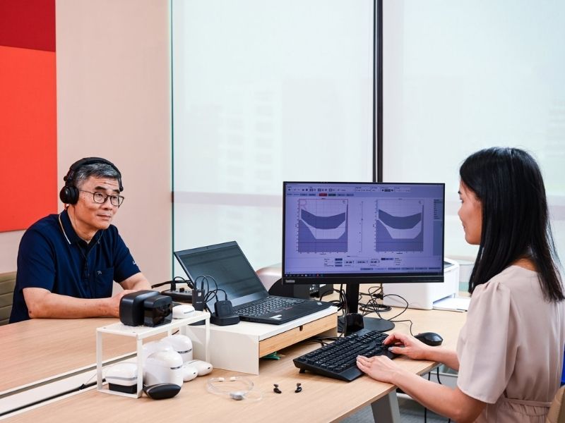Undergo a quick, painless hearing test to determine your level of hearing loss, or submit your latest audiogram report if available.
